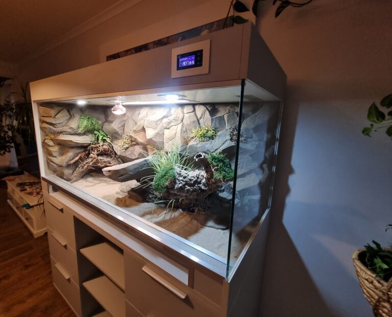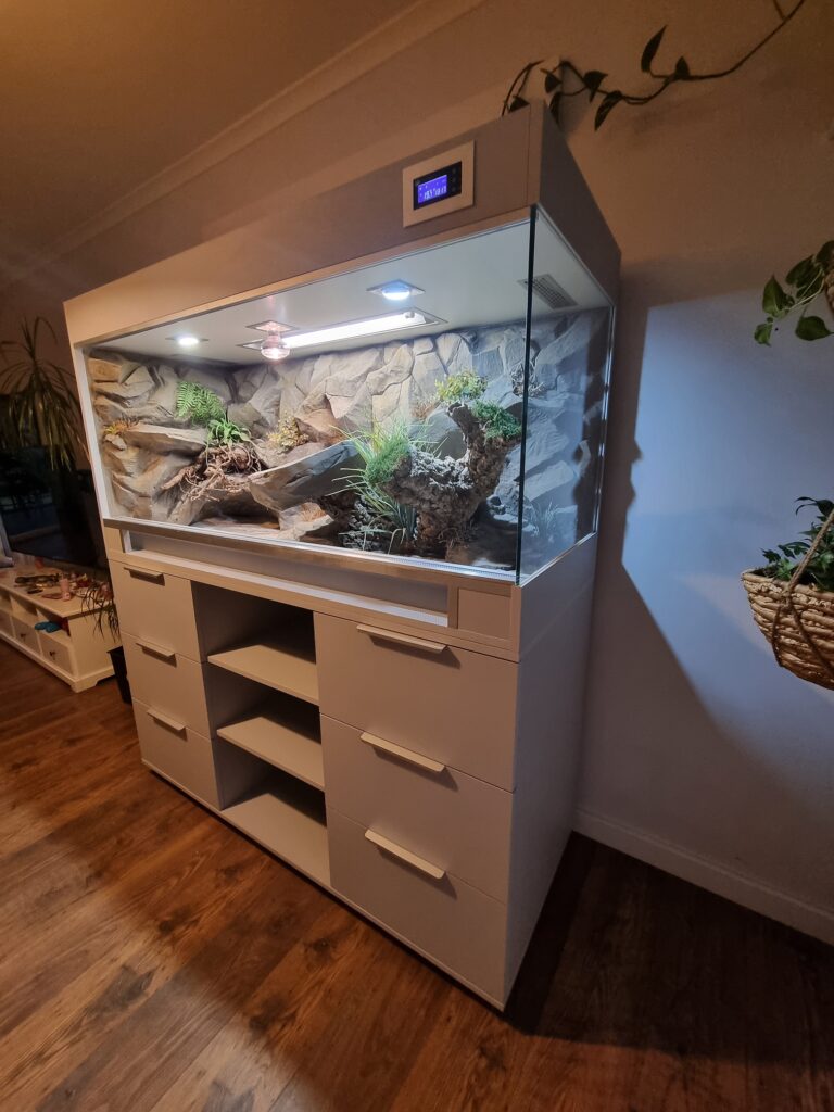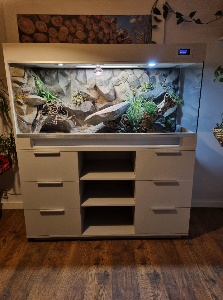Terrarium: 150cm (długość) / 60 cm (szerokość) / 80 cm (wysokość)